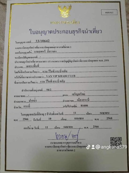 ใบอนุญาตประกอบธุรกิจนำเที่ยวเลขที่33/10642