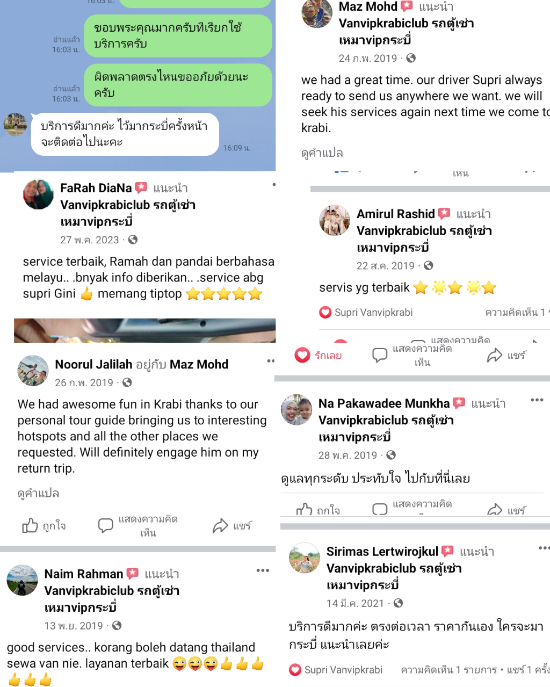 เรามีรถตู้มากกว่า 50คัน กระบี่ ภูเก็ต ตรัง หาดใหญ่ พร้อมตอนรับลูกค้ามาเที่ยวหรือมาทำธุระ ประชุม ศึกษาดูงานพร้อมให้บริการตลอด24ชั่วโมง โทร 095-4735221 พี่บังลี